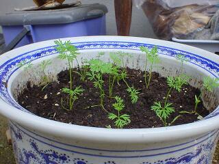 ひとまず発芽したニンジンを周りの土ごと別の鉢に移植.