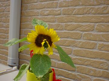 子どもの学習教材の付録のヒマワリが咲きました. |